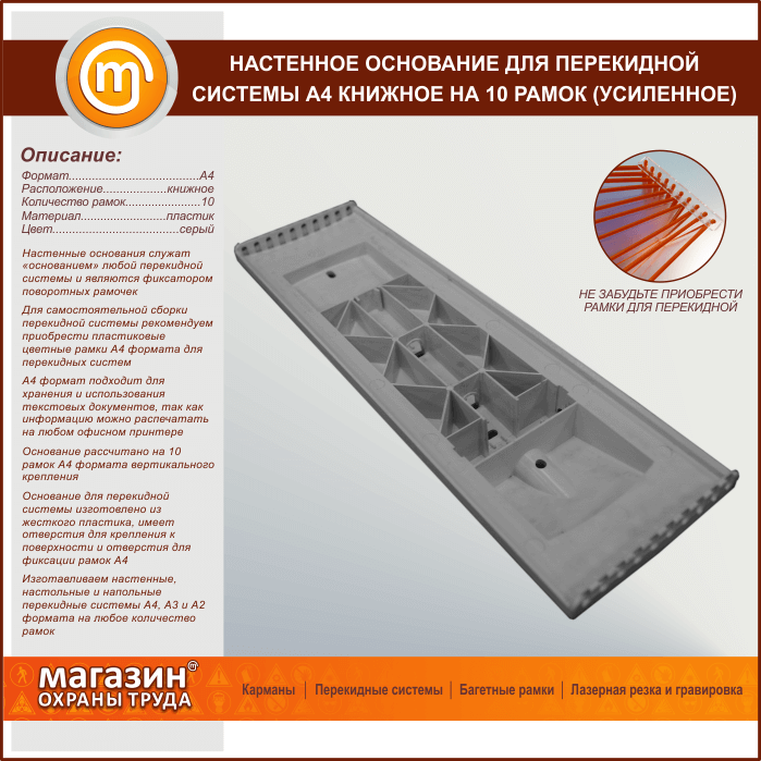 Настенное основание для перекидной системы А4 книжное на 10 рамок (усиленное) в Волгограде купить