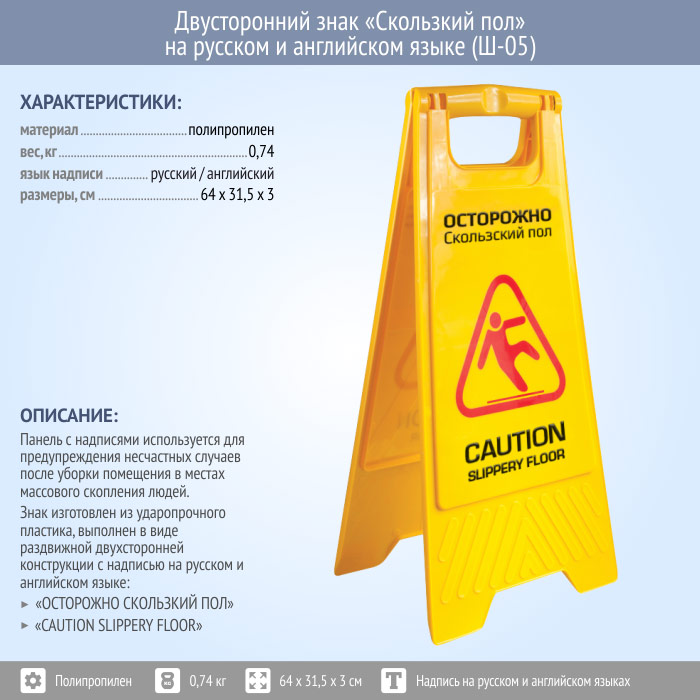 Знак «Скользкий пол» на русском и английском языке (Ш-05) в Волгограде купить