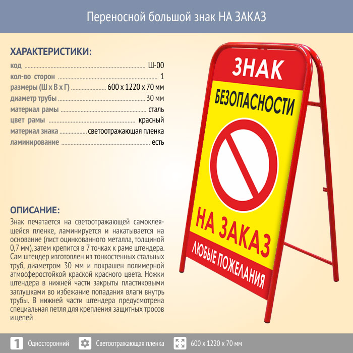 Переносной большой знак НА ЗАКАЗ (односторонний, светоотражающая пленка) в Волгограде купить