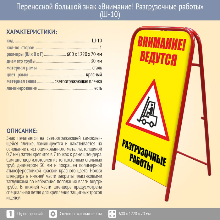 Переносной большой знак «Внимание! Разгрузочные работы» (Ш-10, двусторонний, светоотражающая пленка) в Волгограде купить