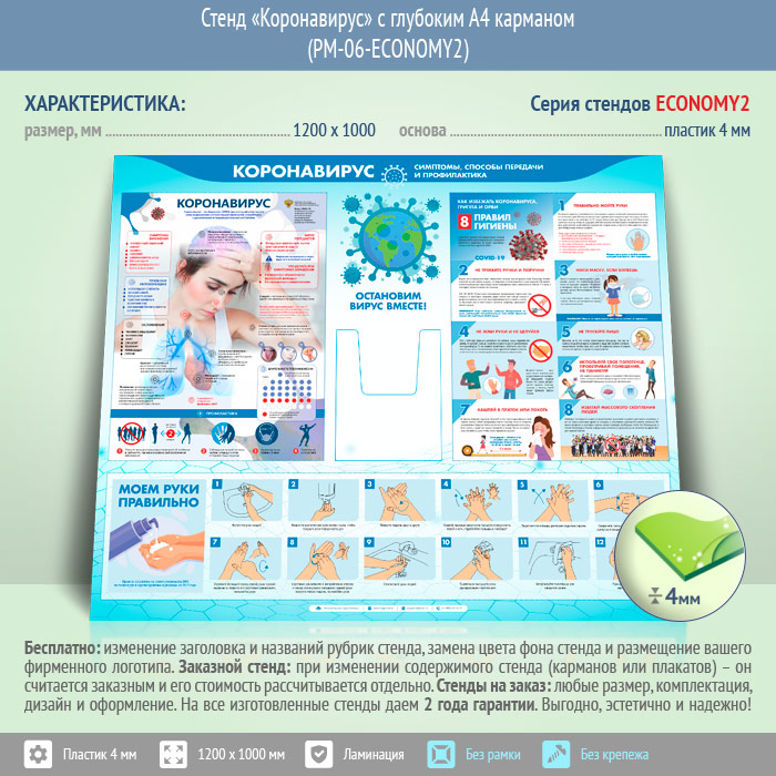 Стенд «Коронавирус» с глубоким А4 карманом (PM-06-ECONOMY2) в Волгограде купить