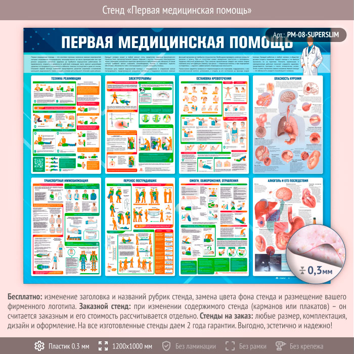 Стенд «Первая медицинская помощь» (PM-08-SUPERSLIM) в Волгограде купить