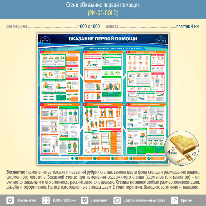 Стенд «Оказание первой помощи» (PM-02-GOLD) в Волгограде купить