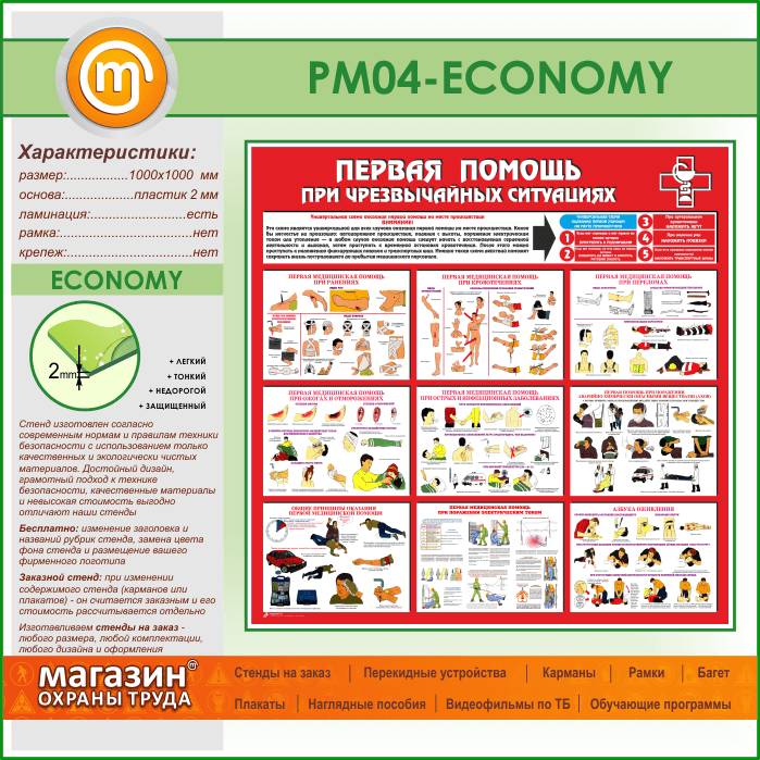 Стенд «Первая помощь при чрезвычайных ситуациях» (PM-04-ECONOMY) в Волгограде купить