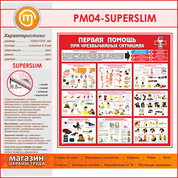 Стенд «Первая помощь при чрезвычайных ситуациях» (PM-04-SUPERSLIM) в Волгограде купить