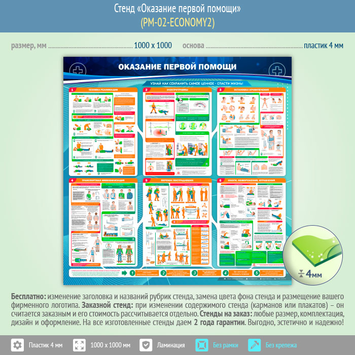 Стенд «Оказание первой помощи» (PM-02-ECONOMY2) в Волгограде купить