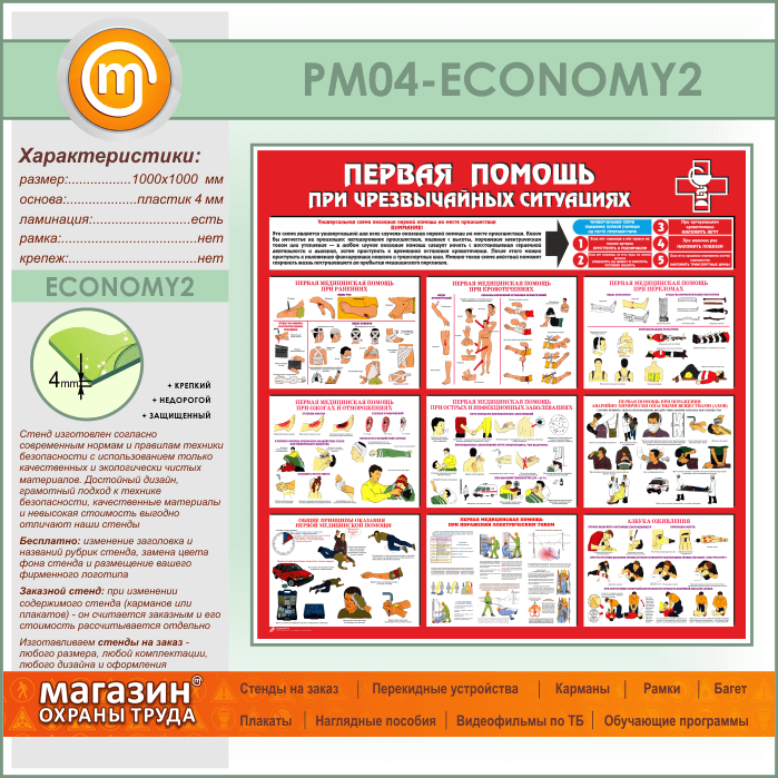 Стенд «Первая помощь при чрезвычайных ситуациях» (PM-04-ECONOMY2) в Волгограде купить