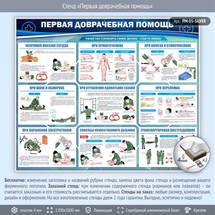Стенд «Первая доврачебная помощь» (PM-05-SILVER) в Волгограде купить