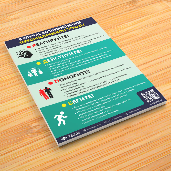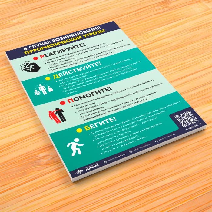 Плакат «В случае возникновения террористической угрозы» (М-109, ламинированная бумага, А3, 1 лист) в Волгограде купить