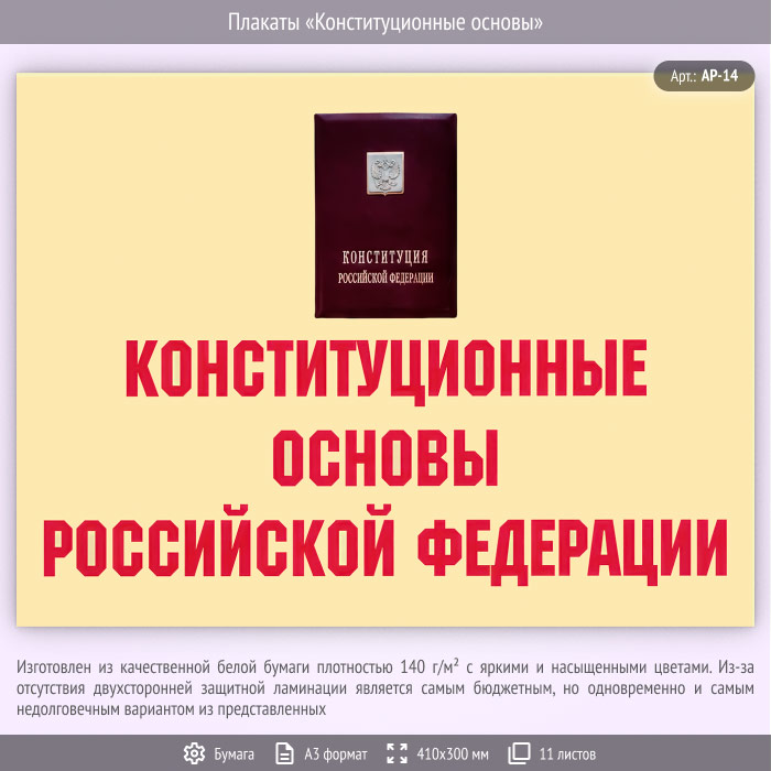 Плакаты «Конституционные основы» (АР-14, бумага, А3, 11 листов) в Волгограде купить