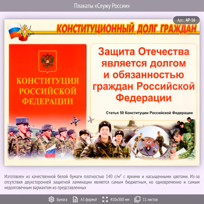 Плакаты «Служу России» (АР-16, бумага, А3, 11 листов) в Волгограде купить
