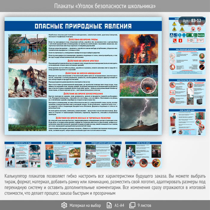 - Плакат «Опасные природные явления» – действия при возникновении природных катаклизмов