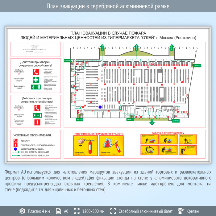 План эвакуации в серебряной алюминиевой рамке (А0 формат) в Волгограде купить
