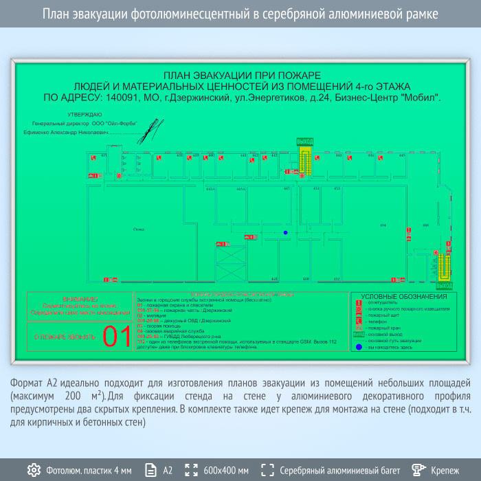 План эвакуации фотолюминесцентный в серебряной алюминиевой рамке (А2 формат) в Волгограде купить