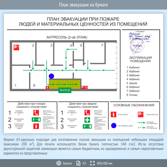 План эвакуации на бумаге (А3 формат) в Волгограде купить