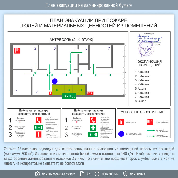 План эвакуации на ламинированной бумаге (А3 формат) в Волгограде купить