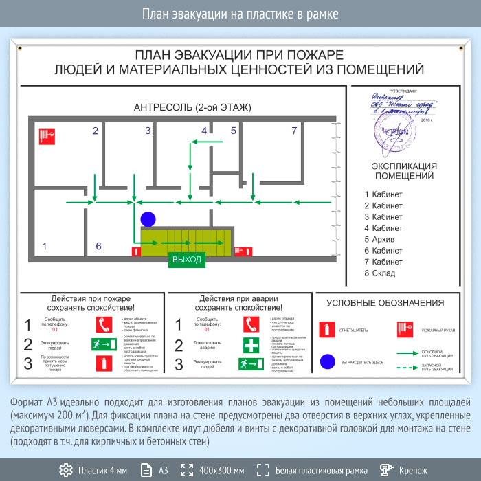 План эвакуации на пластике в рамке (А3 формат) в Волгограде купить