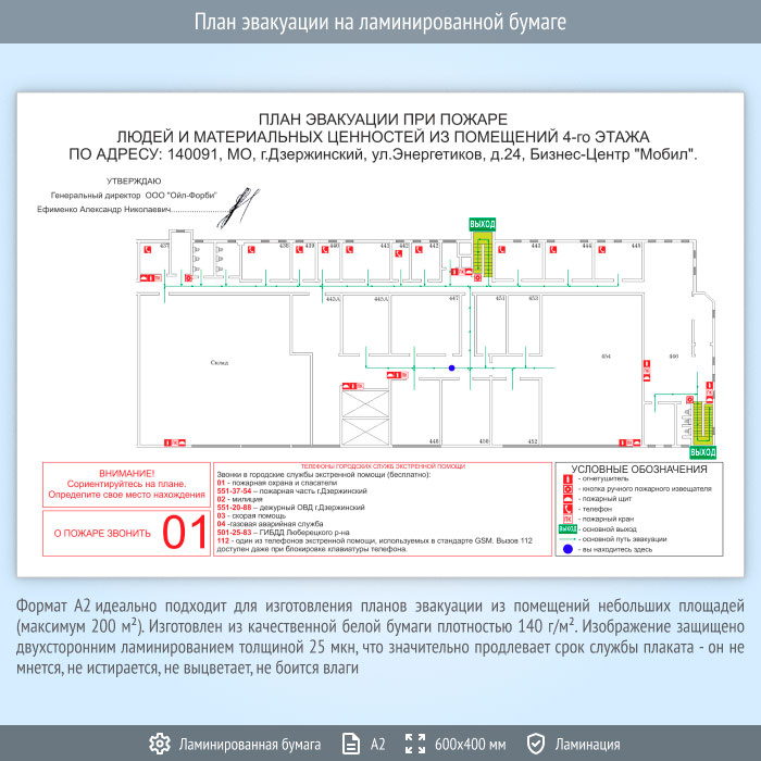 План эвакуации на ламинированной бумаге (А2 формат) в Волгограде купить