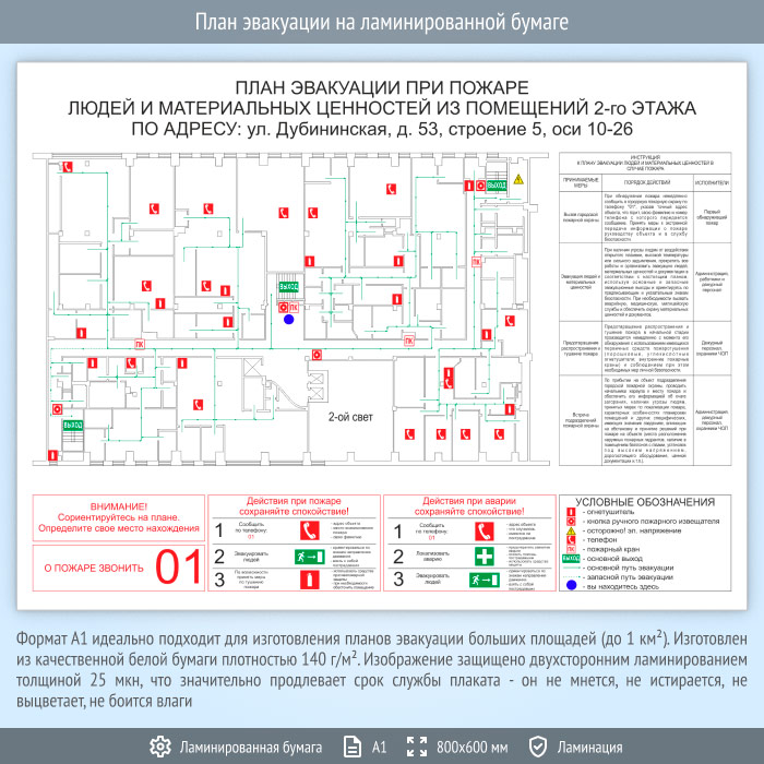 План эвакуации на ламинированной бумаге (А1 формат) в Волгограде купить