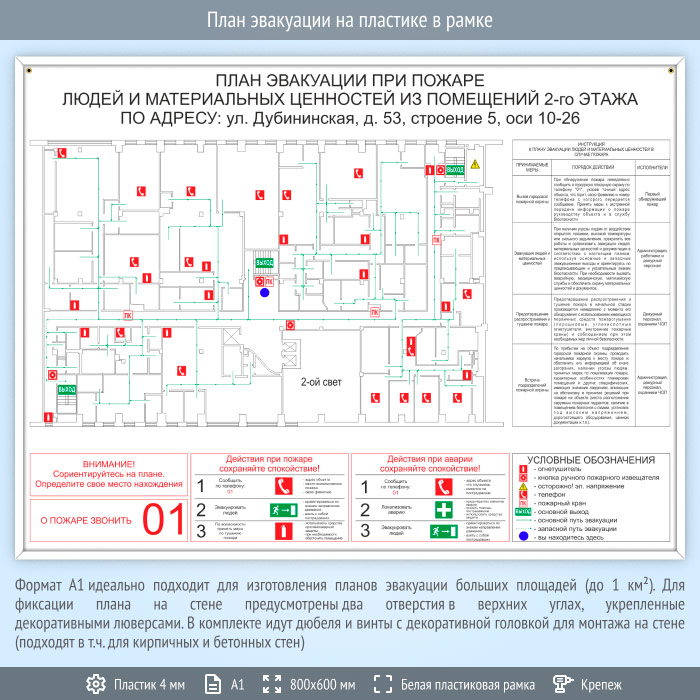 План эвакуации на пластике в рамке (А1 формат) в Волгограде купить