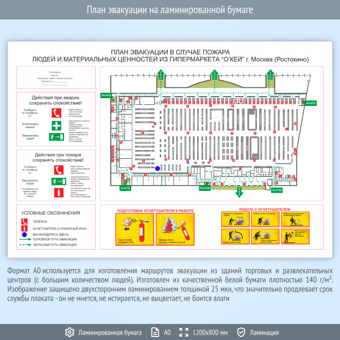 План эвакуации на ламинированной бумаге (А0 формат) в Волгограде купить