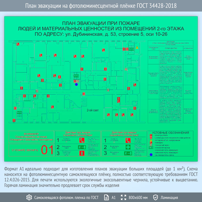 План эвакуации на фотолюминесцентной плёнке ГОСТ 34428-2018 (А1 формат) в Волгограде купить
