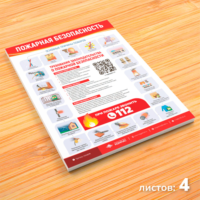 Плакаты «Пожарная безопасность» (М-41, ламинированная бумага, А2, 4 листа) в Волгограде купить
