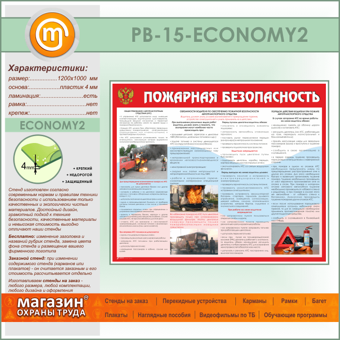 Стенд «Пожарная безопасность на автотранспорте» (PB-15-ECONOMY2) в Волгограде купить
