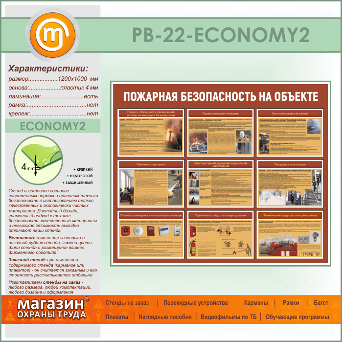 Стенд «Пожарная безопасность на объекте» (PB-22-ECONOMY2) в Волгограде купить