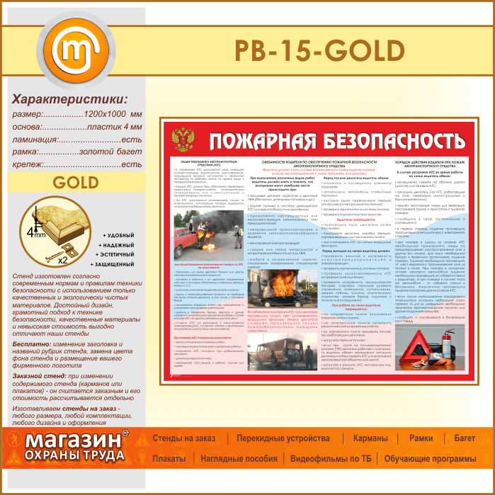 Стенд «Пожарная безопасность на автотранспорте» (PB-15-GOLD) в Волгограде купить