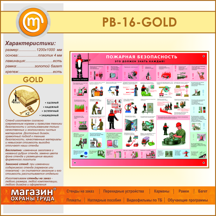 Стенд «Пожарная безопасность. Это должен знать каждый» (PB-16-GOLD) в Волгограде купить