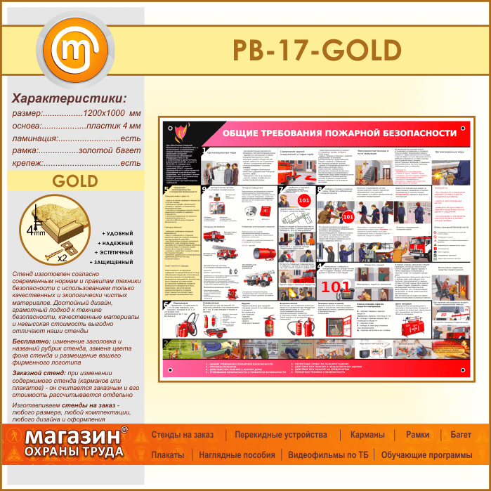 Стенд «Общие требования пожарной безопасности» (PB-17-GOLD) в Волгограде купить