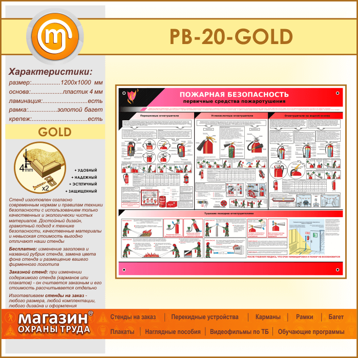 Стенд «Пожарная безопасность. Первичные средства пожаротушения» (PB-20-GOLD) в Волгограде купить