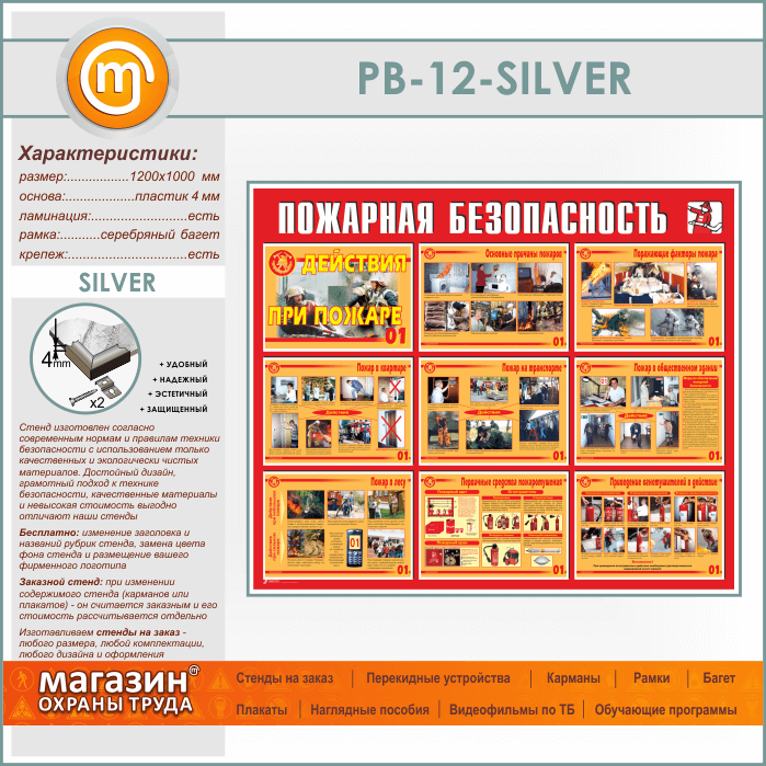 Стенд «Пожарная безопасность. Действия при пожаре» (PB-12-SILVER) в Волгограде купить