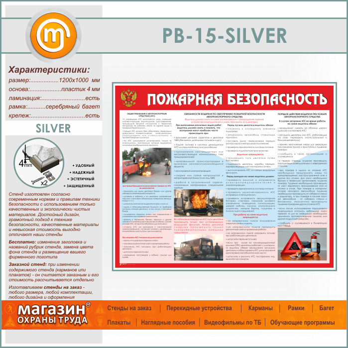 Стенд «Пожарная безопасность на автотранспорте» (PB-15-SILVER) в Волгограде купить