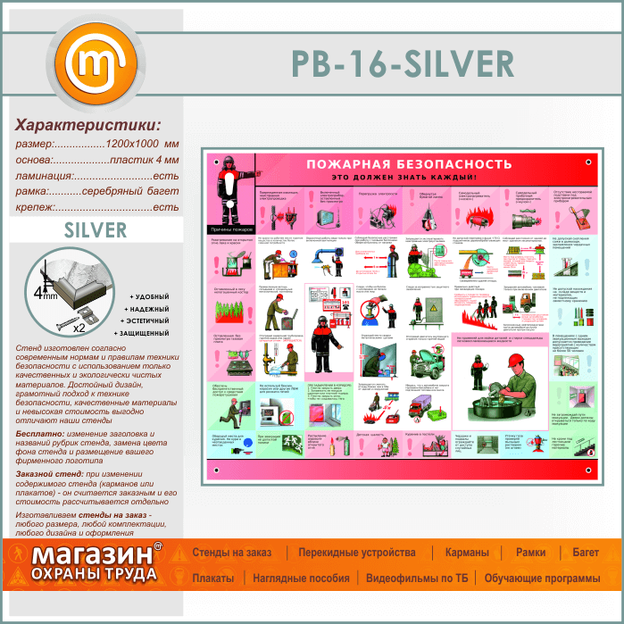 Стенд «Пожарная безопасность. Это должен знать каждый» (PB-16-SILVER) в Волгограде купить