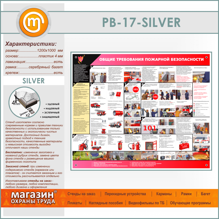 Стенд «Общие требования пожарной безопасности» (PB-17-SILVER) в Волгограде купить