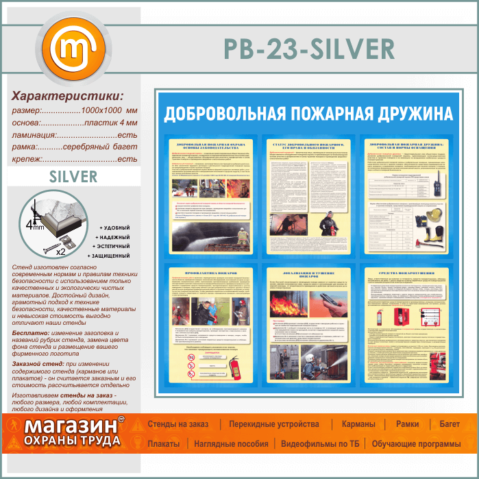 Стенд «Добровольная пожарная дружина» (PB-23-SILVER) в Волгограде купить