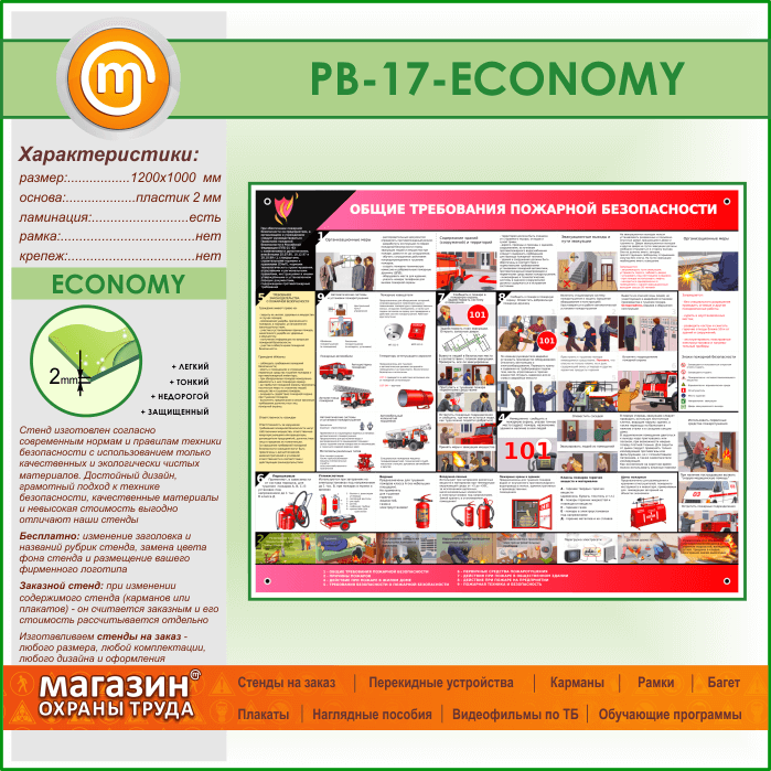 Стенд «Общие требования пожарной безопасности» (PB-17-ECONOMY) в Волгограде купить