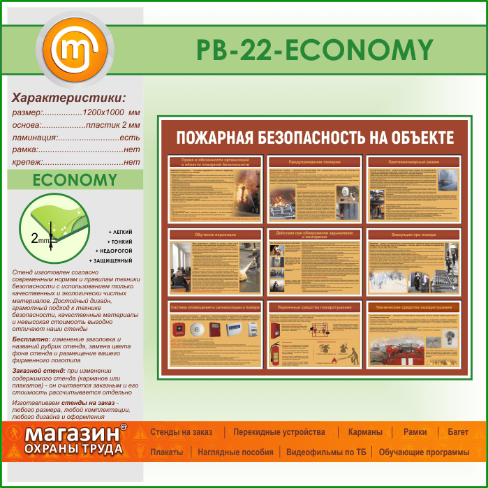 Стенд «Пожарная безопасность на объекте» (PB-22-ECONOMY) в Волгограде купить