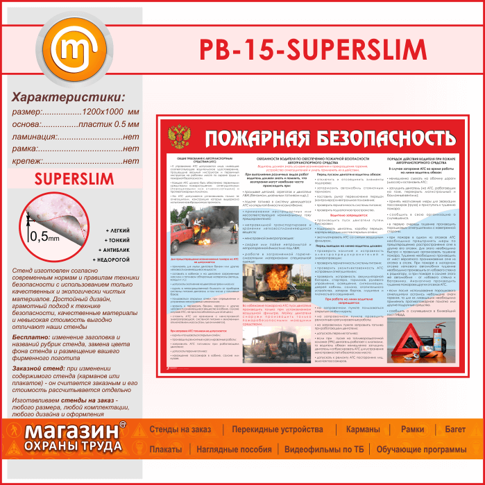Стенд «Пожарная безопасность на автотранспорте» (PB-15-SUPERSLIM) в Волгограде купить