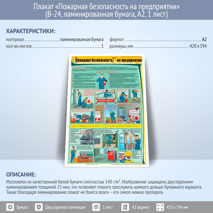 Плакат «Пожарная безопасность на предприятии» (В-24, ламинированная бумага, А2, 1 лист) в Волгограде купить