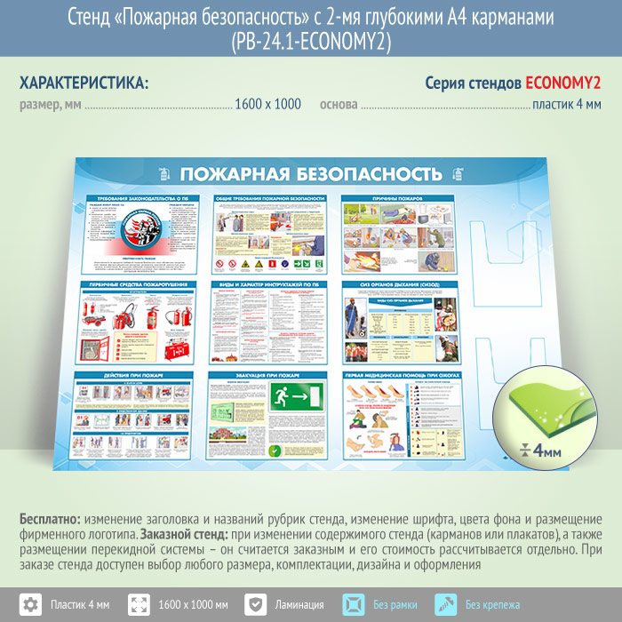 Стенд «Пожарная безопасность» с 2-мя глубокими А4 карманами (PB-24.1-ECONOMY2) в Волгограде купить
