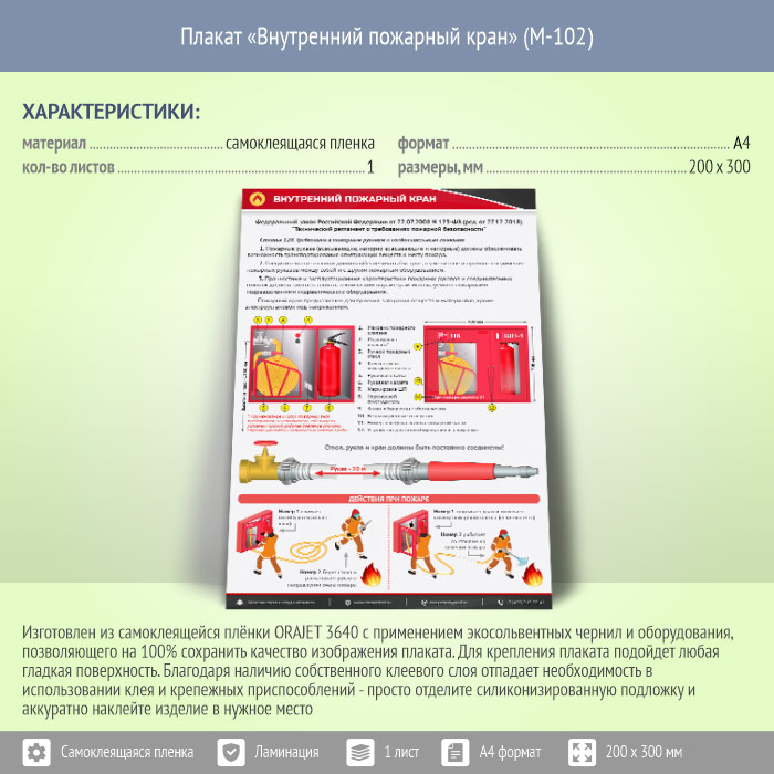 Плакат «Внутренний пожарный кран» (М-103, самоклеящаяся пленка, А4, 1 лист) в Волгограде купить