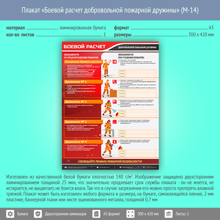 Плакат «Боевой расчет добровольной пожарной дружины» (М-14, ламинированная бумага, А3, 1 лист) в Волгограде купить