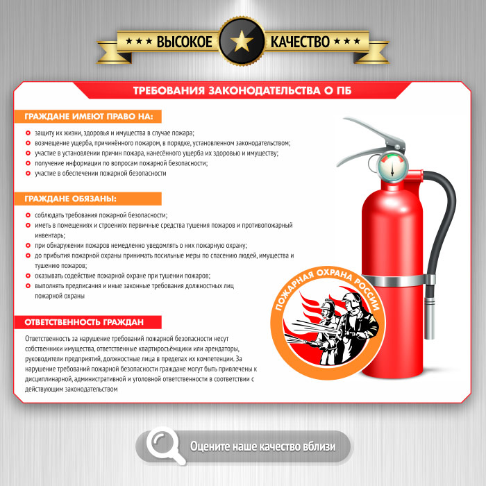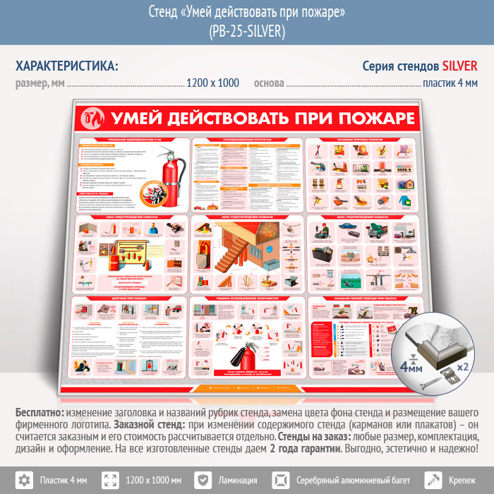 Стенд «Умей действовать при пожаре» (PB-25-SILVER) в Волгограде купить
