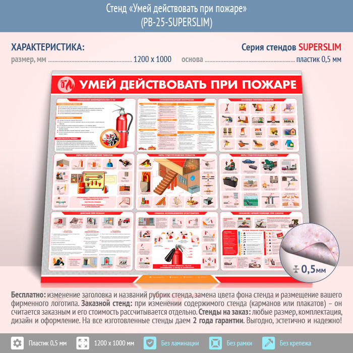 Стенд «Умей действовать при пожаре» (PB-25-SUPERSLIM) в Волгограде купить