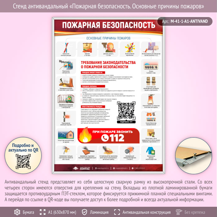 Стенд антивандальный «Пожарная безопасность. Основные причины пожаров» (M-41-1-А1-ANTIVAND) в Волгограде купить