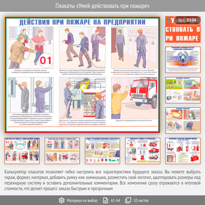 Плакаты «Умей действовать при пожаре» (ВЗ-04, 10 листов) в Волгограде купить