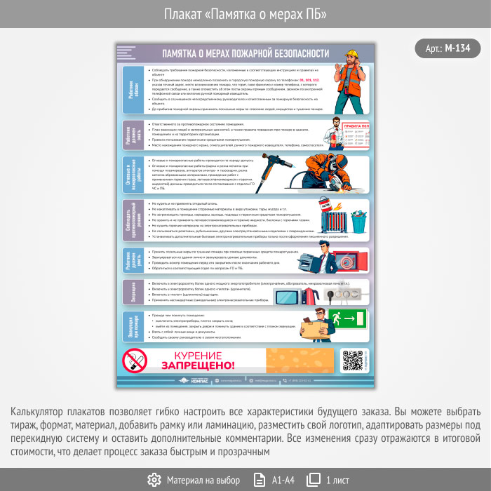 Плакат «Памятка о мерах ПБ» с QR (М-134, 1 лист) в Волгограде купить